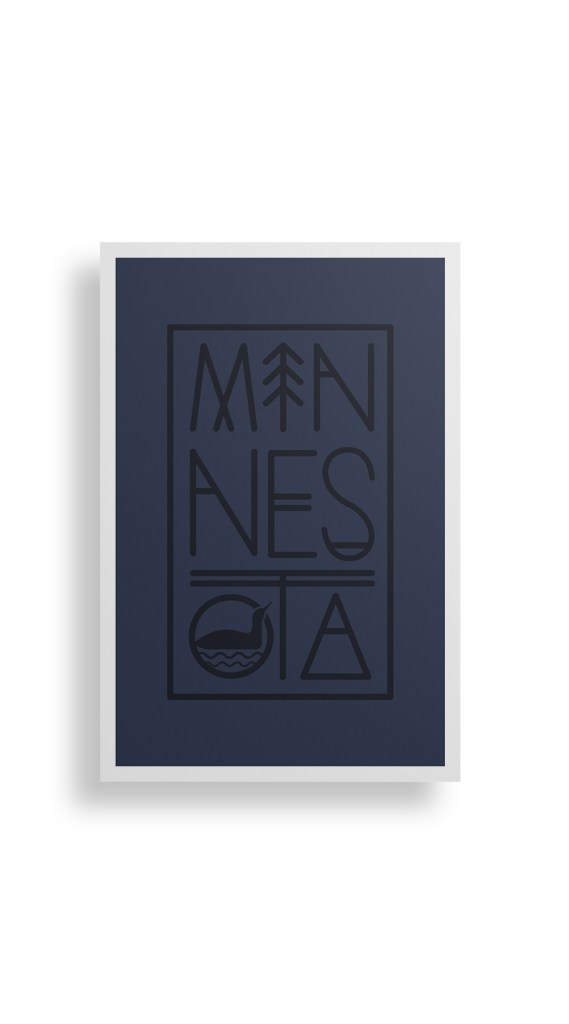 This poster was inspired by the Minnesota rustic landscape showcasing the northern minnesotan woods and the iconic state bird the Loon in a modern typographic style.